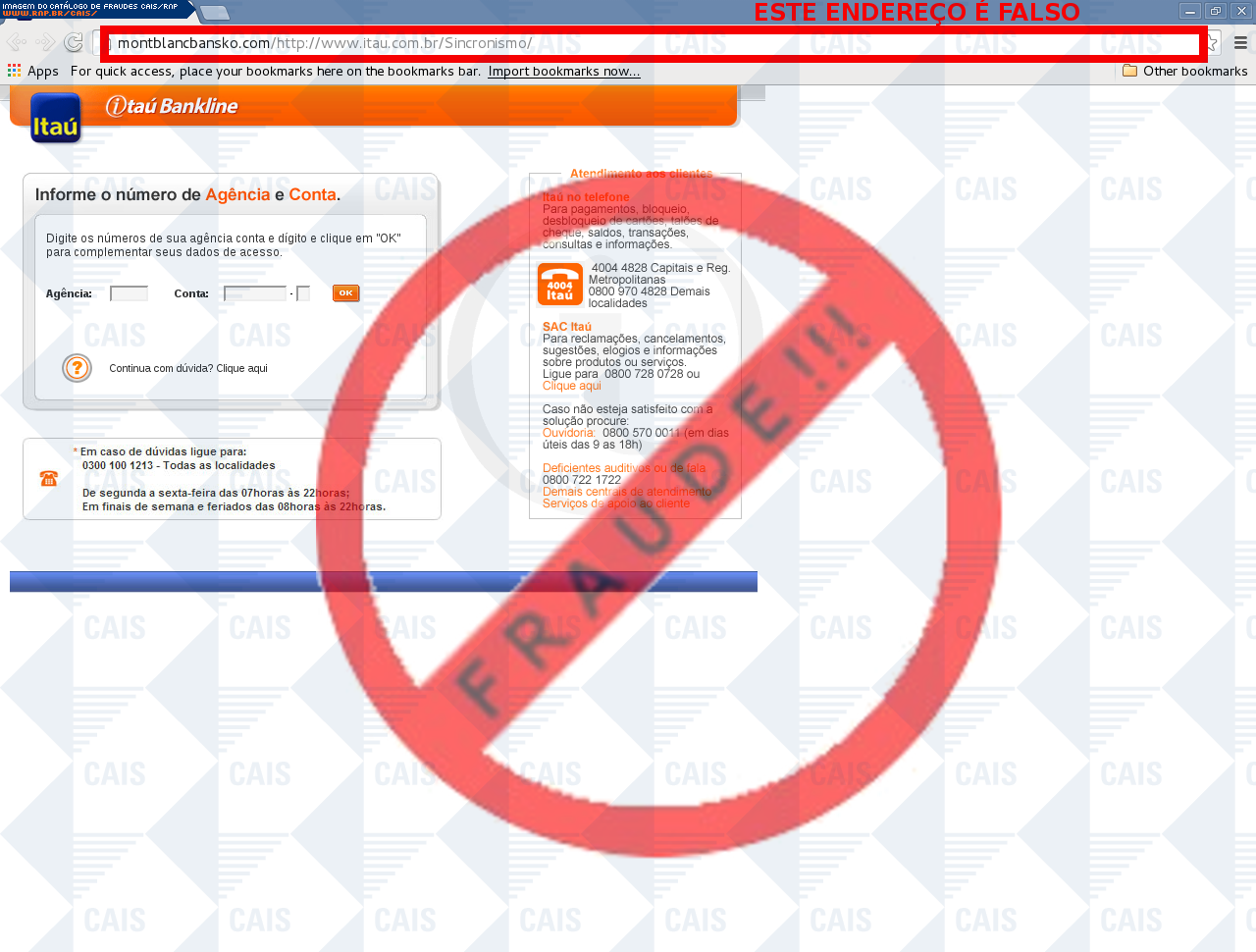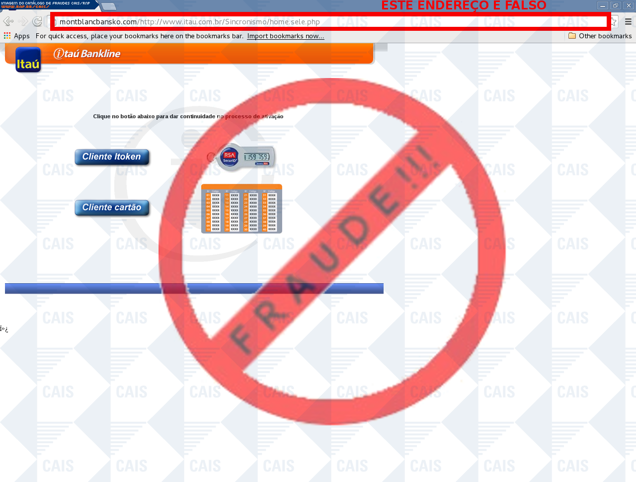 | comentário | A vítima recebe uma mensagem informando que seu cartão itoken referente a conta no banco Itaú não está sincronizado sendo necessário realizar a sincronização no link disponível, entretanto a página é falsa criada para roubar os dados bancários do usuário. | |