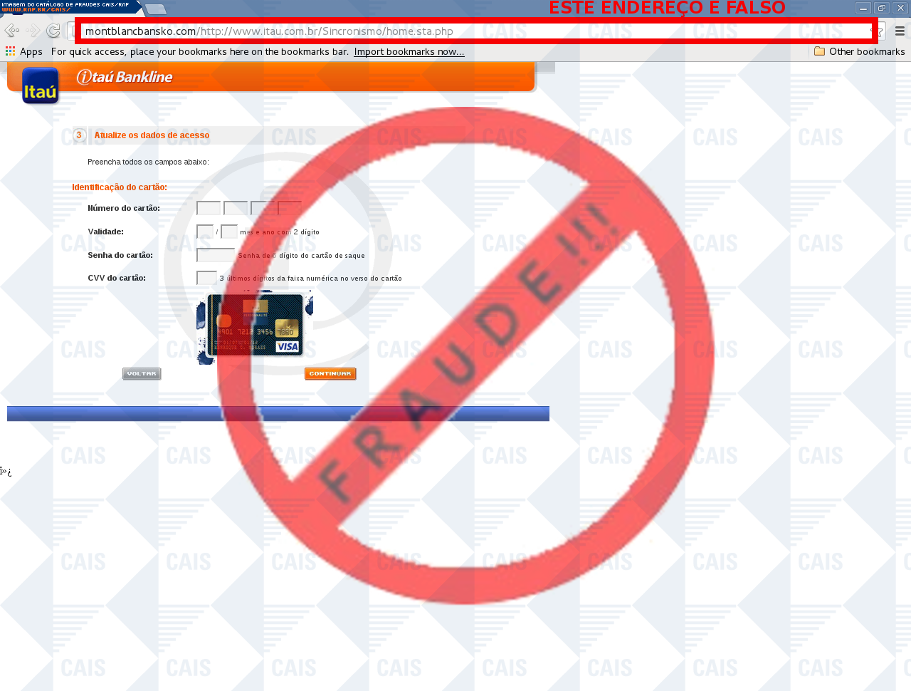 | comentário | A vítima recebe uma mensagem informando que seu cartão itoken não está atualizado sendo necessário realizar a atualização no link disponível, entretanto a página é falsa criada para roubar os dados bancários do usuário. | |