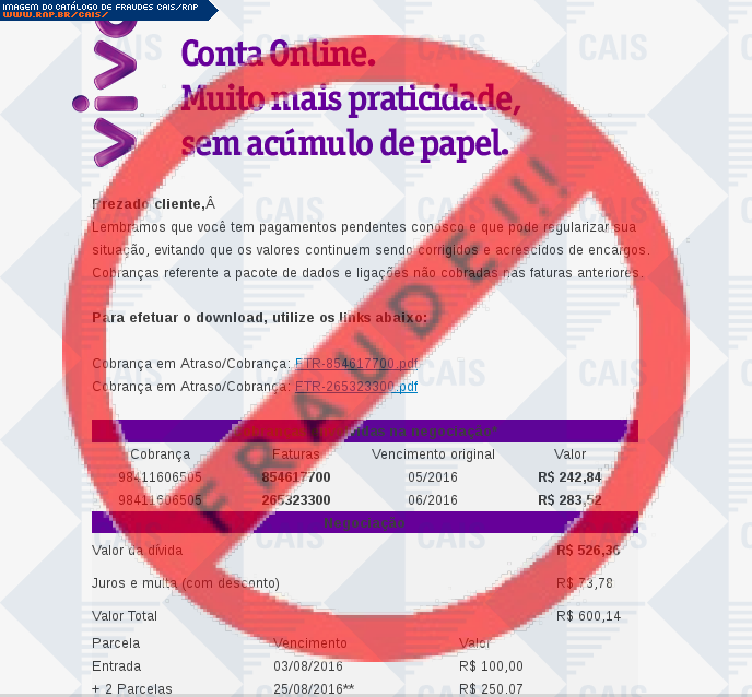 | tipo | FRAUDE - Cobrança com Fatura da Vivo | ID: 49486 |
