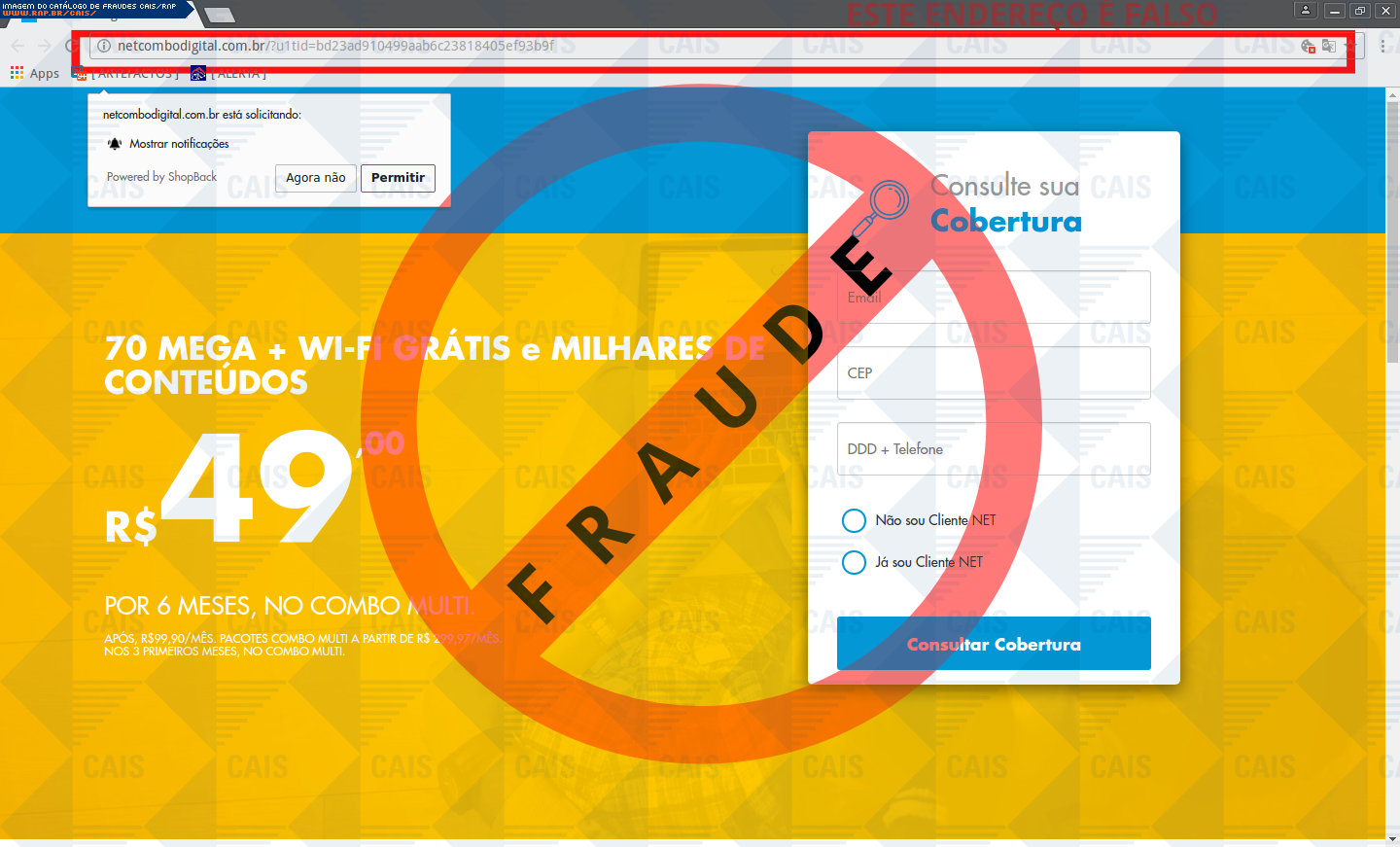 Com a disponibilização pública deste serviço, não é intenção do Centro de Atendimento a Incidentes de Segurança (CAIS) da Rede Nacional de Ensino e Pesquisa (RNP) violar direitos autorais sobre marcas registradas ou logotipos de empresas que porventura constem das amostras. O objetivo é tão somente alertar os usuários sobre as espécies de golpes que se utilizam de tais propriedades intelectuais ou industriais de forma criminosa.