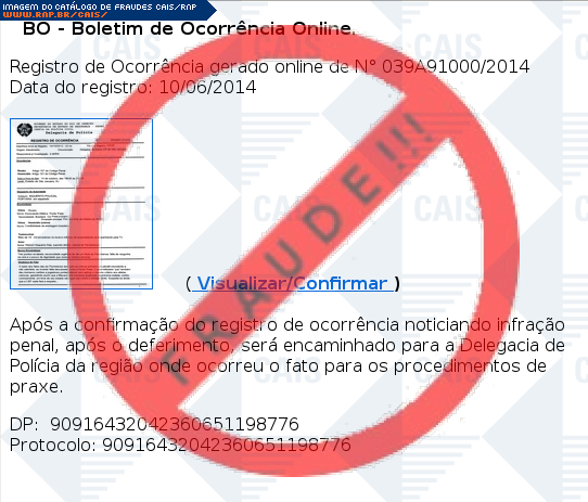 | arquivo malicioso | Boletim de Ocorrncia Online Eletrnico Para Resposder Imediatamente.exe | |