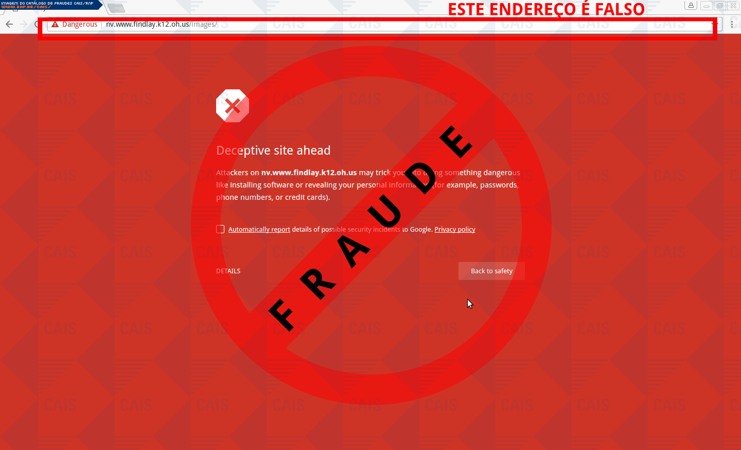 |   |  Fraudes identificadas e divulgadas pelo CAISA partir de 2008, todas as fraudes identificadas pelo CAIS estão sendo ordenadas de acordo com a data de distribuição e disponibilizadas para consulta, com o intuito de conscientizar a comunidade sobre os principais golpes que estão em circulação. Adicionalmente, o CAIS envia alertas de segurança através da lista CAIS Alerta quando uma fraude mostra-se particularmente perigosa aos usuários de computadores. Reporte fraudes: