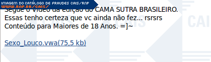 | comentário | A fraude contém um link para um suposto vídeo com cenas de sexo. O conteúdo malicioso não estava disponível no momento da análise. | |
