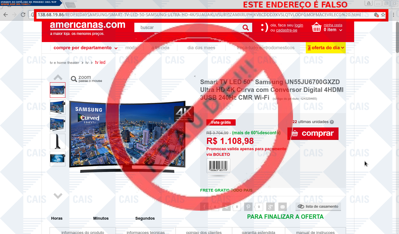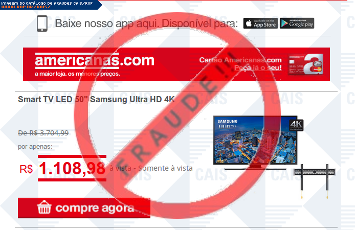 | comentário | A vítima recebe um e-mail informando sobre promoções no site de compra da Americanas disponibilizando link de vários produtos em desconto, no entanto a página é falsa destinada a roubar as informações pessoais e do cartão de crédito/débito do usuário. | |