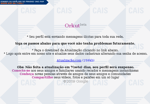 | arquivo malicioso | nerople.orkut2.com | |