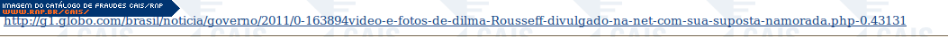 | comentário | A mensagem contém um link para uma notícia do portal g1 sobre supostas fotos, que terias sido divulgadas por um hacker, da presidente Dilma com a namorada. O conteúdo malicioso já havia sido removido no momento da análise. | |