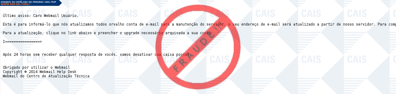| tipo | FRAUDE - Atualização Webmail | ID: 36691 |