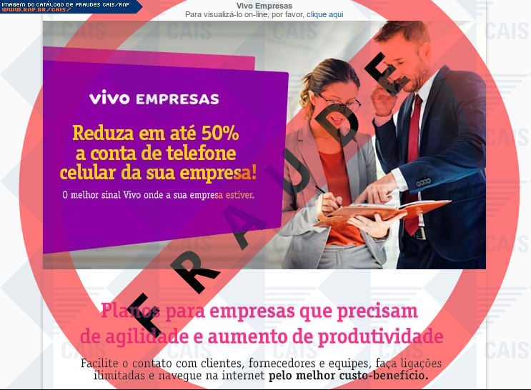 Esta página tem função informativa e educativa. Exibe uma coleção de imagens de phishing scam (fraudes eletrônicas) ou malware (código malicioso) veiculados por meio de spam (e-mail não-solicitado). Trata-se de conteúdo exemplificativo, não exaustivo, uma vez que não é possível contemplar todos os casos de fraudes existentes. Assim, caso você tenha conhecimento de um exemplar que não esteja aqui presente, isto não significa que não seja válido ou real. Inclusive incentivamos que você o envie para análise do CAIS para que, se for o caso, passe a integrar o nosso acervo.