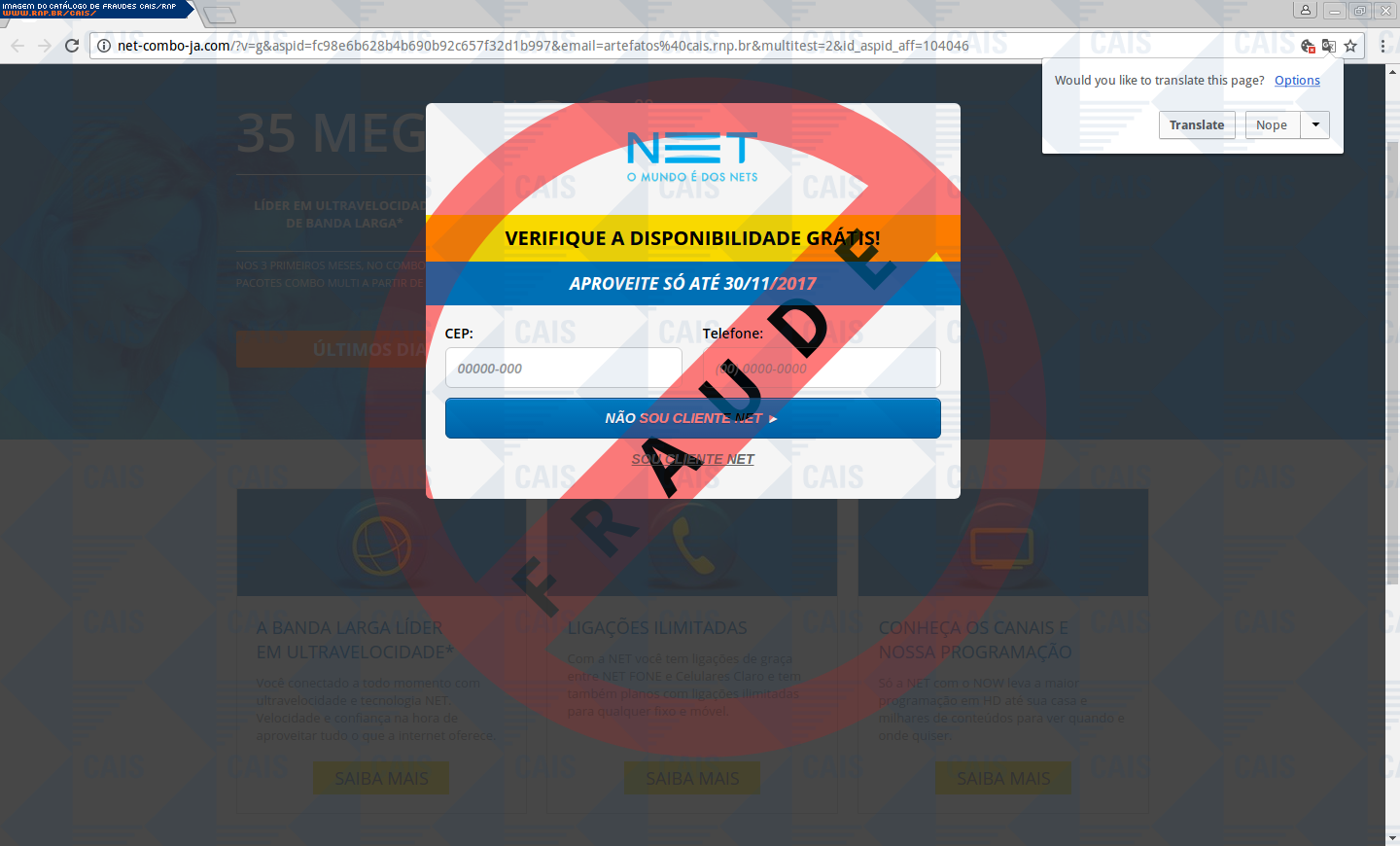Com a disponibilização pública deste serviço, não é intenção do Centro de Atendimento a Incidentes de Segurança (CAIS) da Rede Nacional de Ensino e Pesquisa (RNP) violar direitos autorais sobre marcas registradas ou logotipos de empresas que porventura constem das amostras. O objetivo é tão somente alertar os usuários sobre as espécies de golpes que se utilizam de tais propriedades intelectuais ou industriais de forma criminosa.