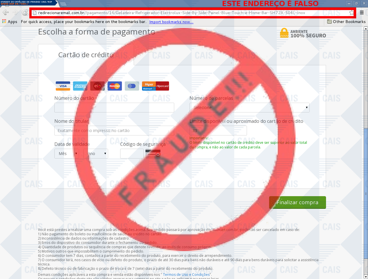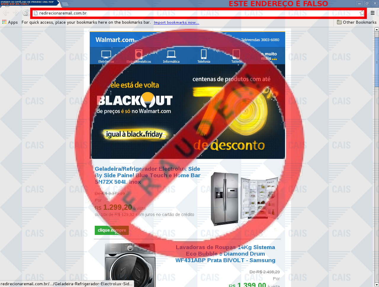 | comentário | Um site com promoções referente ao site de compras Walmart redireciona para o suposto site da empresa de e-comerce, no entanto o site é falso criado para roubar os dados e informações do cartão da vítima. | |