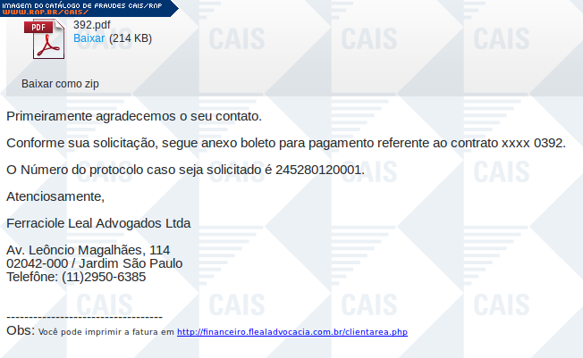 | arquivo malicioso | Contrato_0392(pdf).zip | |