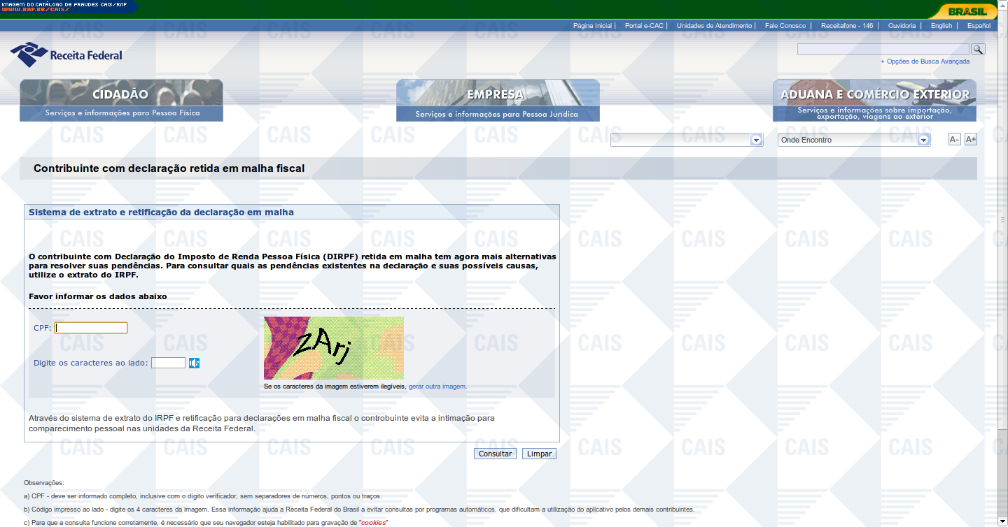 | tipo | Malha fina Receita Federal | ID: 16671 |