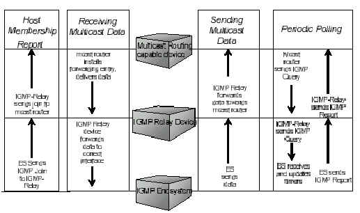 O módulo IP também deve ser estendido para oferecer suporte ao IGMP, que é usado para manter os roteadores multicast vizinhos informados das participações em grupos multicast presentes em uma rede local em particular. Para suportar o IGMP, todos host nível 2 deve se juntar ao grupo “todos os hosts” (endereço 224.0.0.1) em cada interface de rede durante sua inicialização e deve assim permanecer enquanto o host estiver ativo.
