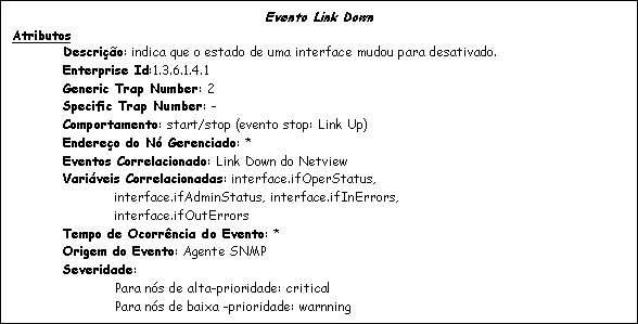 Quadro 1 - Entrada no Dicionário de Dados para o Evento Link Down