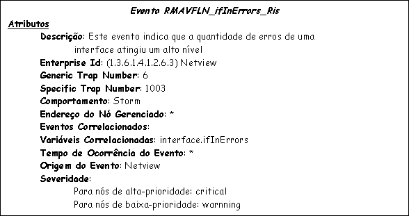 - Evento RMAVFLN_ifInErrors_Ris: evento configurado no NetView e indica que, durante a coleta feita em uma interface, esta atingiu um nível de erros elevado.