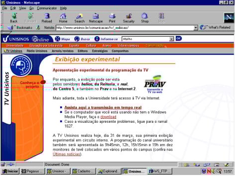 Uma outra experiência interessante que está começando é a transmissão do sinal da TV Unisinos via rede interna (tal qual feito na Semana da Qualidade) e também via rede metropolitana, através de multicast.