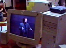 - Uma estação multimídia Pentium III 500MHz rodando o encoder do Windows Technologies localizada no PRAV, que recebia via antena de microondas o sinal da palestra e o codificava em arquivos ASF, repassando-o para o servidor;