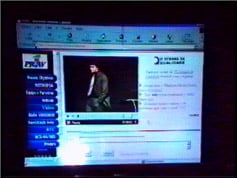 Uma alternativa para não ter que passar pela Internet1 seria a existência de dois links na página de acesso ao vídeo, um para a rede interna e outro para a rede metropolitana. Isso não foi feito para não replicar a página na web, que já estava no contexto da TV, como mostra a figura 12. Como pode ser visto, quando o usuário clica em "Assista aqui a transmissão em tempo real", é aberta uma janela do Media Player no navegador, iniciando a recepção do vídeo. Para tanto, o link busca um arquivo ".nsf", que tem informações sobre o grupo multicast que o cliente deve se cadastrar, bem como os protocolos de compressão de áudio e vídeo que devem ser utilizados. Após o início da recepção de vídeo, o usuário pode exibir em tela cheia, melhorando a visualização do sinal.