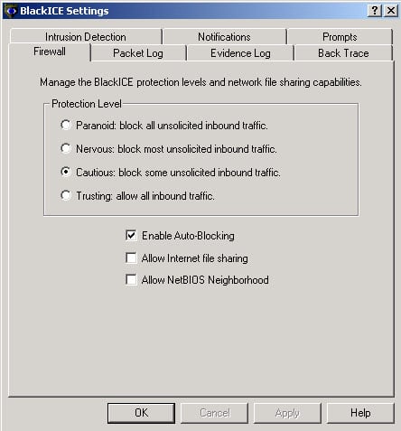 A utilização da opção Paranoid é mais indicada, assim como desabilitar o compartilhamento de arquivos e conexões NetBIOS. Utilizar a opção de bloqueio automático pode ser perigoso para inexperientes, pois é possível perder a conexão com a rede devido ao recebimento de um pacote forjado (spoofing).