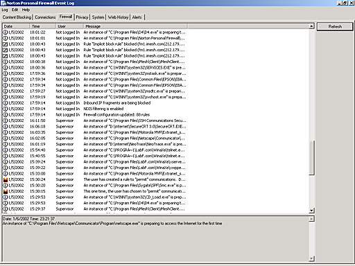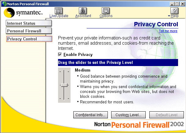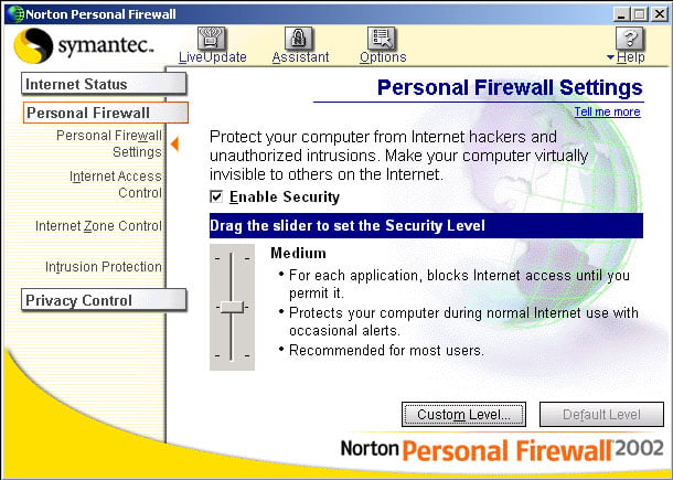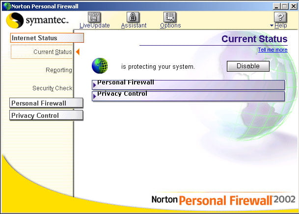 Versão disponível em janeiro/2002: Norton Personal Firewall 2002 4.0