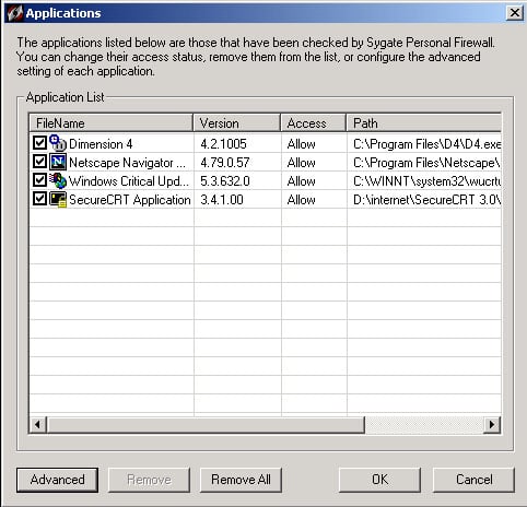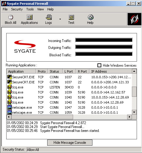Versão disponível em janeiro/2002: Sygate Personal Firewall 4.2.872