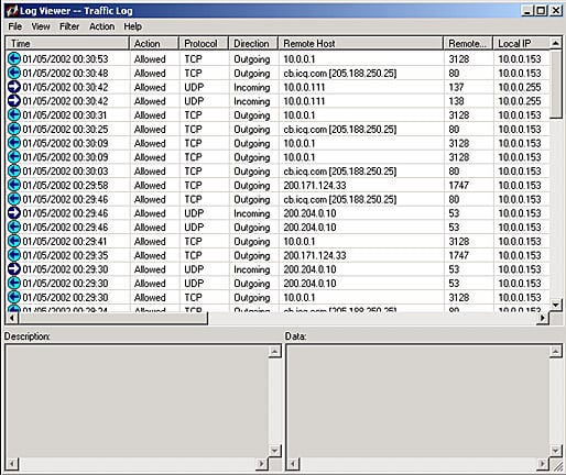 Os logs sobre o tráfego monitorado permitem identificar o sentido em que a conexão foi realizada, tipo de protocolo, qual foi o destino e porta acessada. Este tipo de informação é extremamente útil para a compreensão de como uma aplicação funciona e como elaborar manualmente regras específicas.