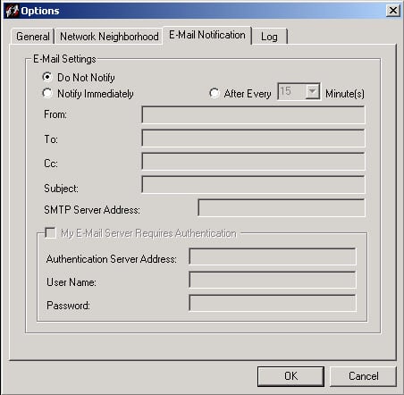 Dentro das opções de configuração é possível habilitar um endereço de email para o qual sejam enviados os logs de forma imediata ou após decorrido um tempo pré-estabelecido. Esta funcionalidade é extremamente interessante. No entanto, deve-se tomar cuidado para que não sejam enviados logs de forma excessiva.