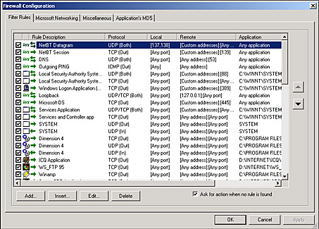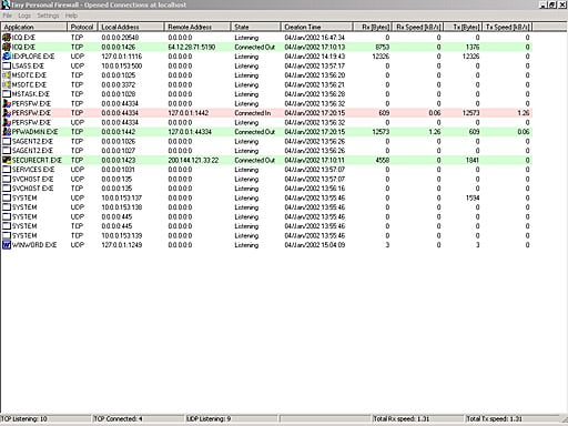 As principais características do Tiny Personal Firewall serão mostradas a seguir: