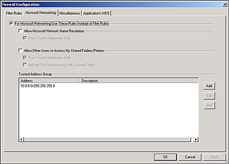 O Painel Microsoft Networking permite que seja controlado o acesso de redes Microsoft de forma diferenciada sem a utilização das regras. É possível, também, restringir o acesso a compartilhamentos de dados e à impressora.