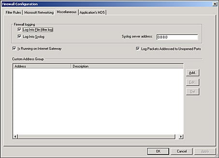 O Painel Miscellaneous trata basicamente dos logs. Um ponto importante é a possibilidade de se enviar os logs para um servidor de logs (loghost), o que permite a centralização dos registros e um armazenamento mais seguro.