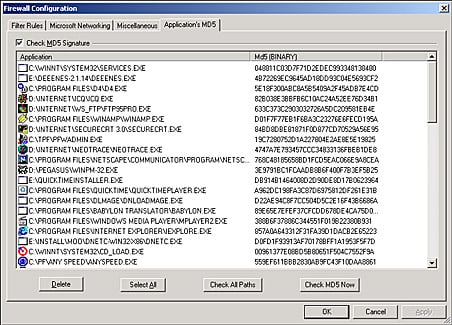 O Painel de assinaturas digitais é um grande diferencial deste firewall pois permite que seja monitorada a integridade dos aplicativos que acessam a internet através de um hash criptográfico (MD5).