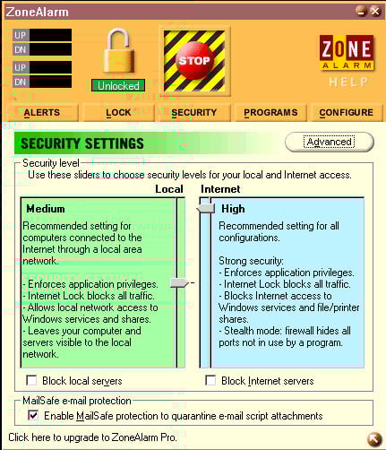 As principais características do ZoneAlarm serão mostradas a seguir: