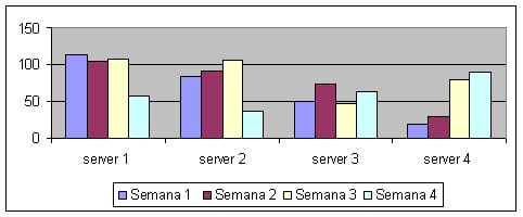 Seguindo esse mesmo modelo, pode-se gerar tanto uma tabela para o número de requests quanto para o número de bytes produzindo, consequentemente, seus respectivos gráficos. Eventualmente essas tabelas e gráficos podem também ser expandidos para se comparar os mesmos valores em diferentes períodos.