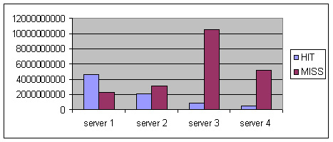 Em paralelo à obtenção desses dados, deve-se gerar uma tabela semelhante a que se segue onde as linhas indicam os servidores de cache e as colunas indicam os valores do HIT e do MISS.