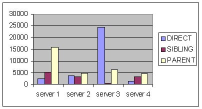 O dimensionamento dos resultados da hierarquia é viabilizado comparando-se três variáveis: DIRECT, SIBLING e PARENT. O valor dessas variáveis é constituído com base somente naquelas informações que o servidor de cache local foi buscar num servidor externo. Assim, dessas informações que foram pegas fora do servidor: