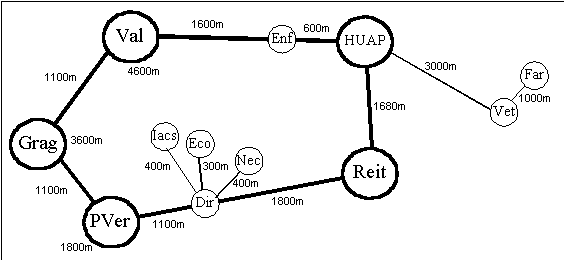 Figura 4: A Rede Óptica da UFF, Indicando o Cumprimento Aproximado de Cabo de Fibra Óptica Usado