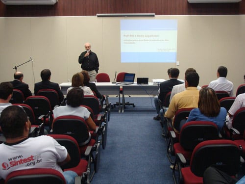 ![]() | RNP realiza cerimônias de entrega da nova capacidade da rede IpêEventos já foram realizados nos estados do Rio Grande do Norte e da Bahia A Rede Nacional de Ensino e Pesquisa (RNP) realizou, nos dias 4 e 12 de maio, cerimônias de entrega da nova capacidade da rede acadêmica nacional, a rede Ipê, nos estados do Rio Grande do Norte e da Bahia, respectivamente. Durante os meses de maio, junho e julho, a RNP inaugurará o novo backbone junto aos seus Pontos de Presença. Com uma capacidade agregada ampliada em 280%, esta mudança na rede Ipê beneficiará diretamente as atividades de pesquisa, ciência, tecnologia, educação superior e cultura do país. ![]() As solenidades aconteceram nas Universidades Federais do Rio Grande do Norte (UFRN) e da Bahia (UFBA), onde a RNP mantém seus Pontos de Presença da rede Ipê, e tiveram a participação do Diretor Geral da RNP, Nelson Simões, dos reitores das universidades, de membros dos comitês gestores das Redes Comunitárias de Educação e Pesquisa das duas cidades (Remessa e MetroPoa), além de representantes de instituições de educação e tecnologia dos estados. Com esse novo backbone nacional, os enlaces mutigigabits (acima de 1 Gbps), que até então somavam 10, serão ampliados para 24 das 27 Unidades da Federação, aumentando a capacidade total da rede Ipê de aproximadamente 60 Gbps para 230 Gbps. Os PoPs do Rio Grande do Norte e da Bahia tiveram seus enlaces ampliados de 2,5 Gbps para 10 Gbps, possibilitando às instituições conectadas nos estados a usufruírem de uma infraestrutura de rede de comutação e colaboração equiparada às mais avançadas redes acadêmicas do mundo. ![]() HistóricoEm maio de 2010 a RNP assinou um acordo com a empresa de telecomunicações Oi, que se comprometeu a disponibilizar parte de sua infraestrutura de fibras ópticas para uso não comercial pela organização. No mesmo ano, a RNP iniciou a implantação da nova geração da rede acadêmica por ela operada. O acordo foi resultado de um compromisso firmado com a Agência Nacional de Telecomunicações (Anatel), na época da compra da Brasil Telecom (BrT). Para autorizar que a Oi adquirisse a BrT, a Anatel estabeleceu que a nova companhia deveria investir em P&D, ao longo de 10 anos, valores correspondentes a 100% do recolhimento feito anualmente ao Fundo para o Desenvolvimento Tecnológico das Telecomunicações (FUNTELL), o que equivale hoje a cerca de R$ 140 milhões. Fotos: AGECOM/UFRN [RNP, 13.05.2011] |